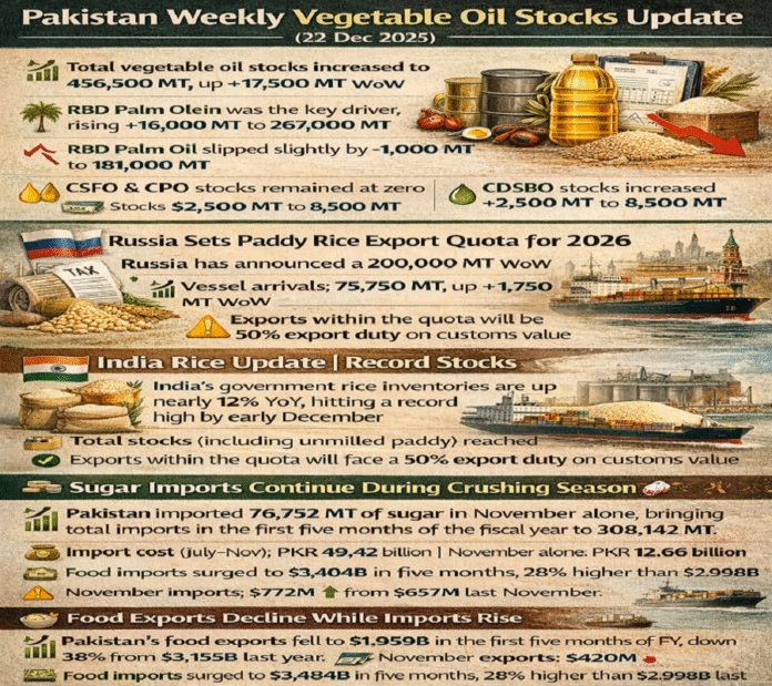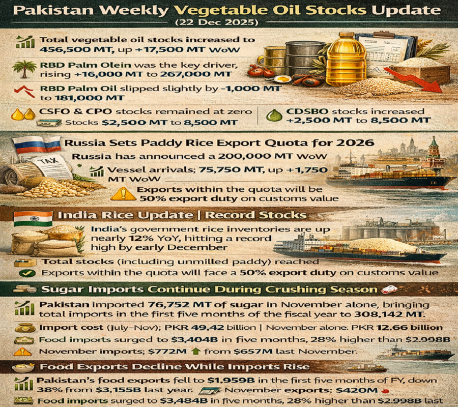📊 Pakistan Weekly Vegetable Oil Stocks Update (22 Dec 2025)