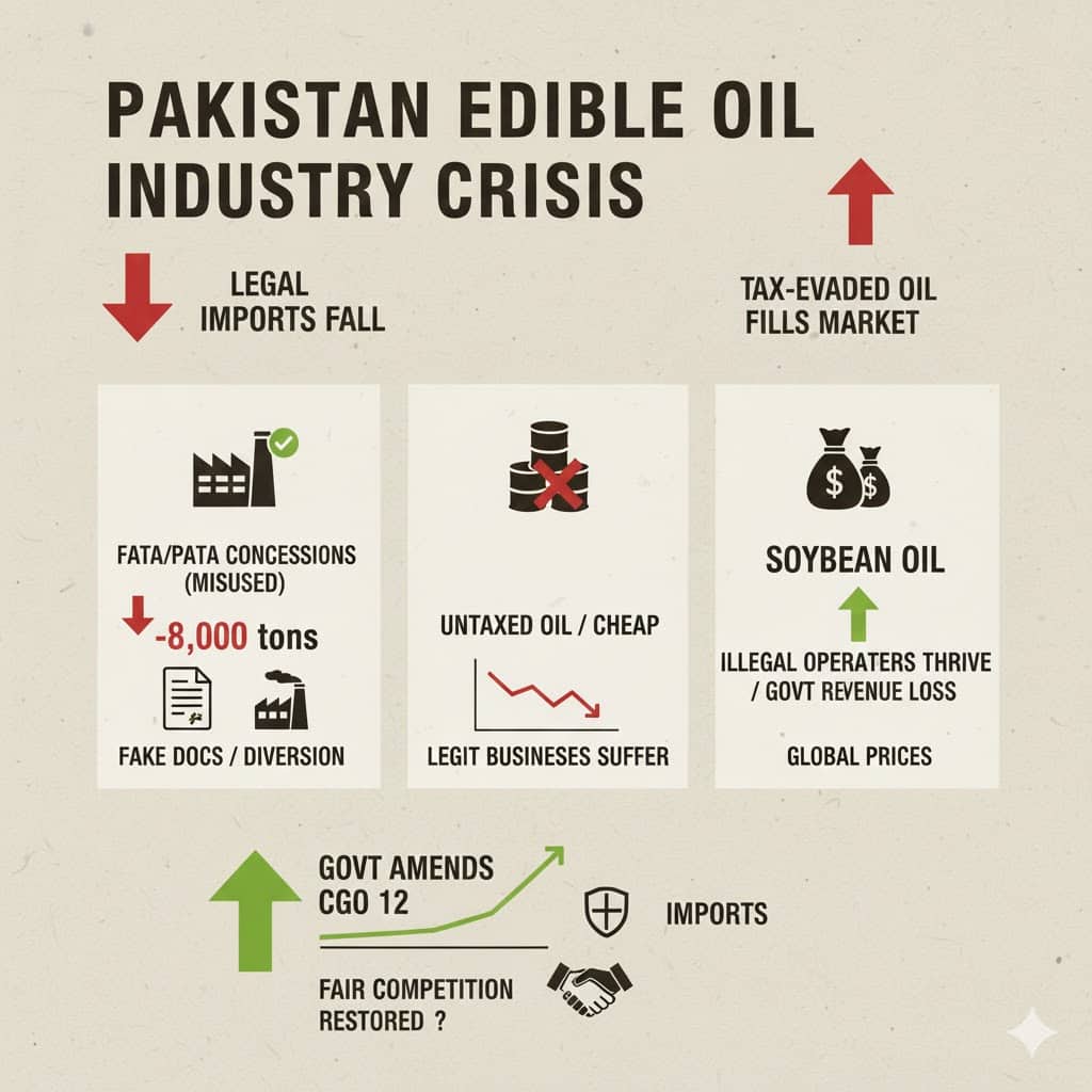 The tax incentives were originally introduced to stimulate industrial growth in underdeveloped tribal regions. However, misuse of these benefits directly hurt Pakistan’s edible oil sector, which imports more than 3 million metric tons of oil every year. Because of tax-free oil was sold at lower prices, the formal market struggled to maintain fair competition. This misuse was not only affecting fair competition but also impacting government revenue.