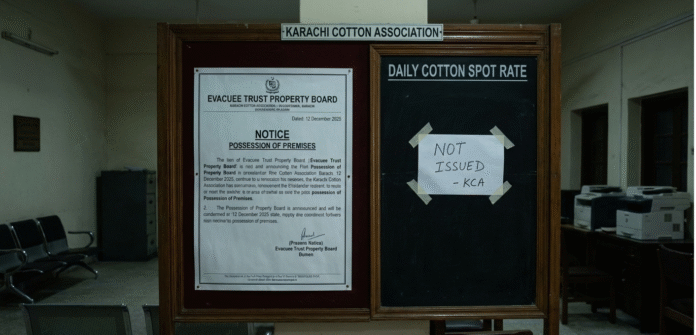 A serious situation has emerged around the Karachi Cotton Association (KCA) building, after the Evacuee Trust Property Board (ETPB) took possession of the premises on 12 December 2025. This sudden action has disrupted business activities for nearly 320 registered cotton brokers and tenants, who report daily financial losses running into millions of rupees. Affected stakeholders have demanded that authorities unseal the premises immediately and allow businesses to resume operations.