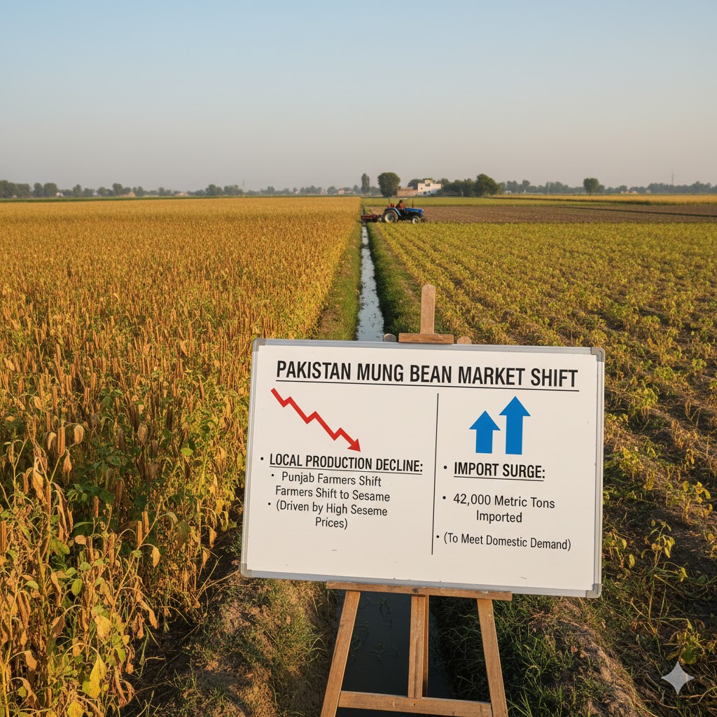 During the current year, Pakistan’s mung bean market has witnessed a notable shift driven by both production challenges and increased import activity. The country imported around 42,000 metric tons of mung bean to meet domestic demand, a significant rise compared to previous years. One of the main reasons behind the surge in imports is the decline in local production, as many farmers in Punjab (the region responsible for more than 85 percent of the mung output) opted to cultivate sesame instead. The decision was largely influenced by the exceptionally attractive sesame prices observed last year, which offered better profitability compared to mung cultivation.