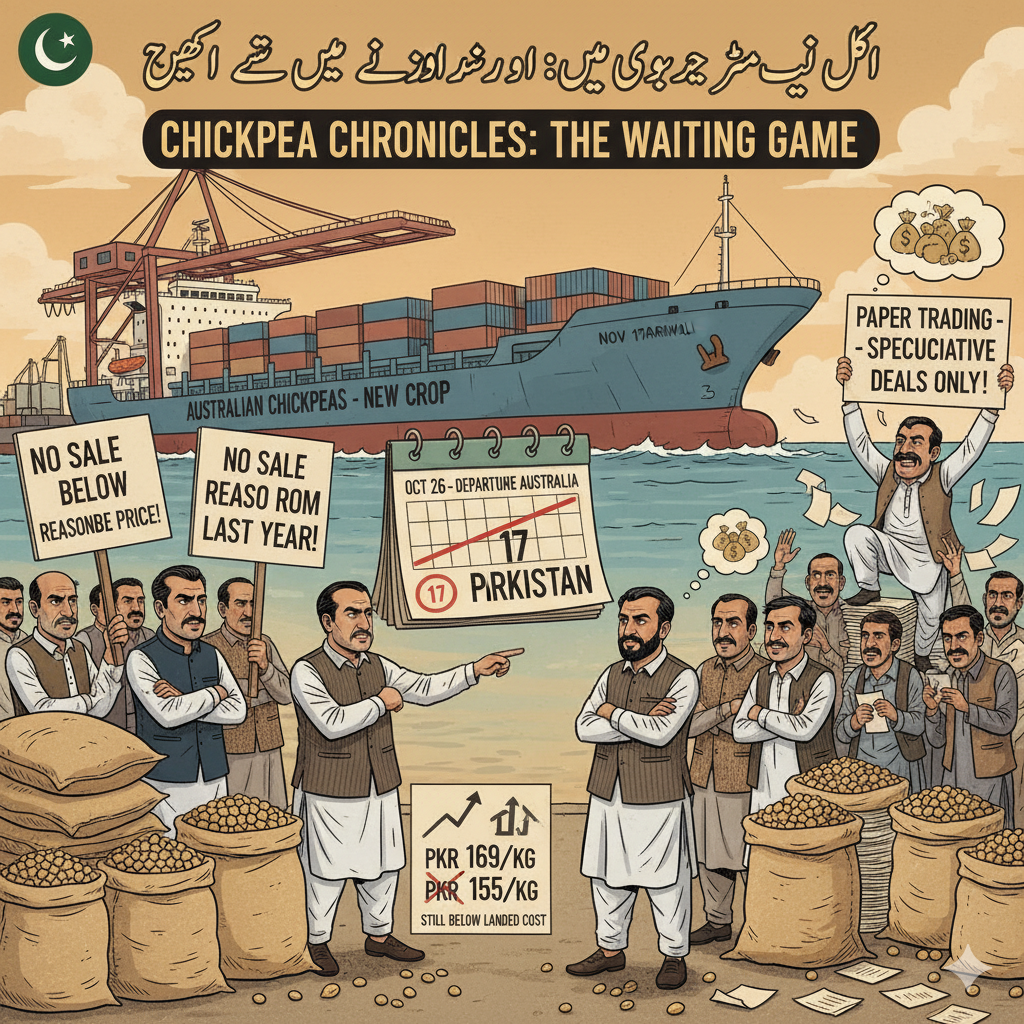 Importers, for now, are firmly holding back their stocks, refusing to sell at current market levels. They argue that prices have already fallen nearly 50% compared to last year and are only willing to sell chickpeas at reasonable levels. With importers staying on the sidelines, currently market activity is largely being driven by the brokers/traders through speculative “paper trading,” where transactions are settled through price adjustments rather than actual physical deliveries.