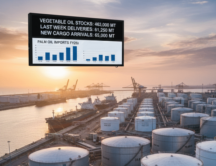 The combined vegetable oil stocks available at Port Qasim have reached 463,000 metric tons, and analysts regard this as a strong level considering current domestic requirements. Refineries received 61,250 metric tons of oil during the previous week, while the estimated new cargo arrivals or vessel loadings for the current week stand at 65,000 metric tons. This suggests that stock levels may further increase in the coming week.