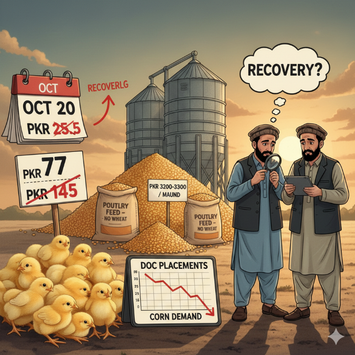 During those high-production months, demand for poultry feed especially corn also increased sharply. This was further supported by government restrictions on feed millers from using wheat in their feed formulations, making corn the primary feed component. As a result, corn prices remained firm and stable for almost three weeks, trading within the range of PKR 3,200 to 3,300 per maund.