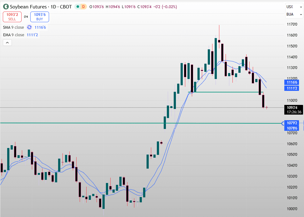 🎯 Remain cautious: U.S. soybeans still face a 13% Chinese tariff, compared with only 3% for Brazilian beans — a factor limiting upside momentum.