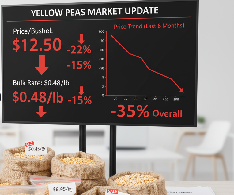 Current Market Prices of yellow peas are currently trading at around Rs 100 per kg in the local market while international prices for yellow peas are being quoted at USD 295–300 per ton.